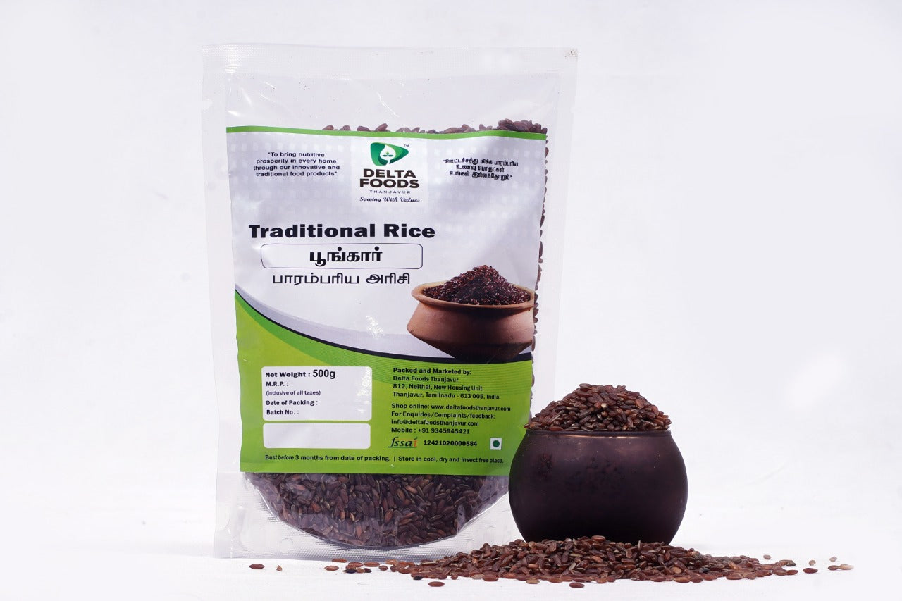 Poongar Rice - ParBoiled - Hand Pounded -Organic Rice. Exclusive Rice for Women. Poongar Rice, is one of the traditional rice, it is slightly reddish in color and resembles Mappilai Samba Rice. It is hand pounded and has more minerals than other type of rice.